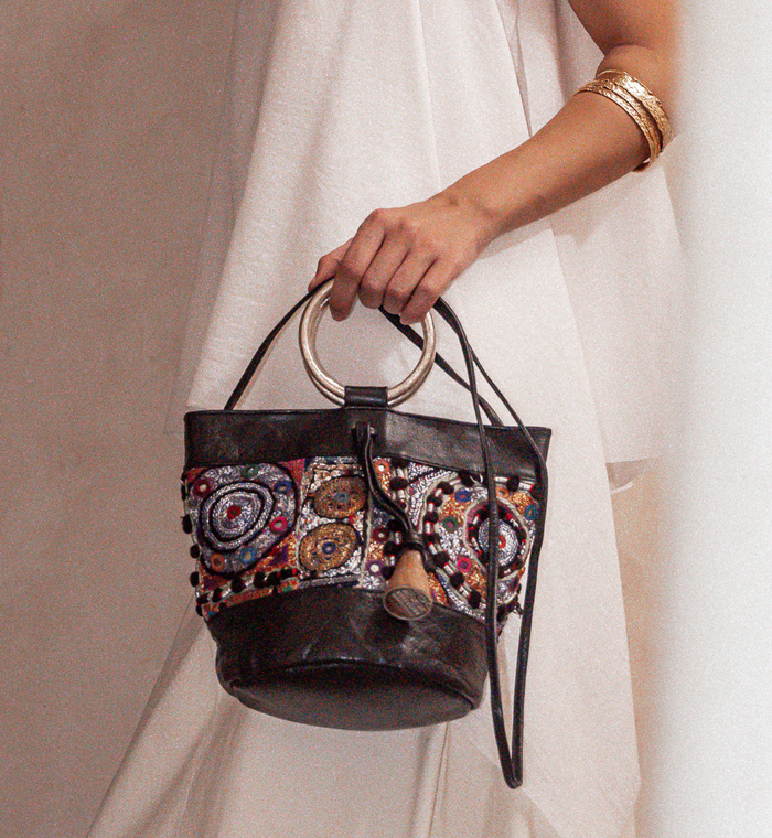 The embroidery panels are made for each bag from a unique, handmade embroidered piece, that carries the typical characteristics of a specific region or tribe.